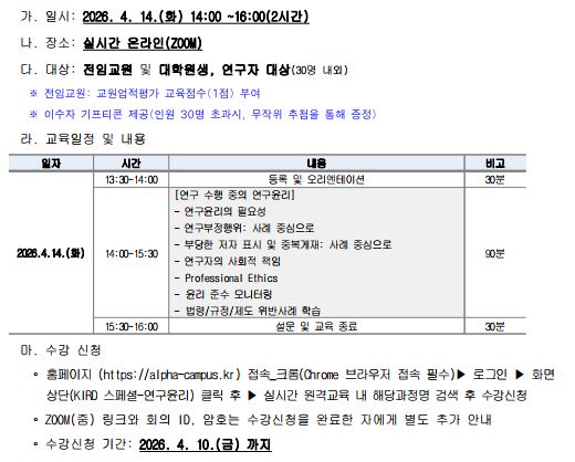 대학 맞춤형 연구 윤리 교육에 대해 안내드립니다.