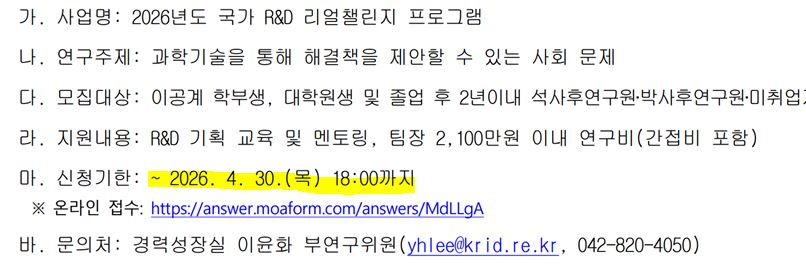| 2026년도 국가 R&D 리얼챌린지 프로그램 안내 | |||
