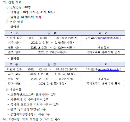 * 문의: 국립부경대학교 국제교류부 (051-629-6903) * 지원서 접수처: pknuoia@pknu.ac.kr |