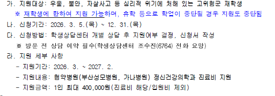 2026학년도 고위험군 학생 진료 지원 신청 안내